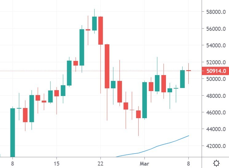 Bitcoin rallied back above the $50k level as the US Senate approved another stimulus package for the US economy. President Biden’s latest US$1.9 trillion deal will now head back to the House for amendments before it is approved.