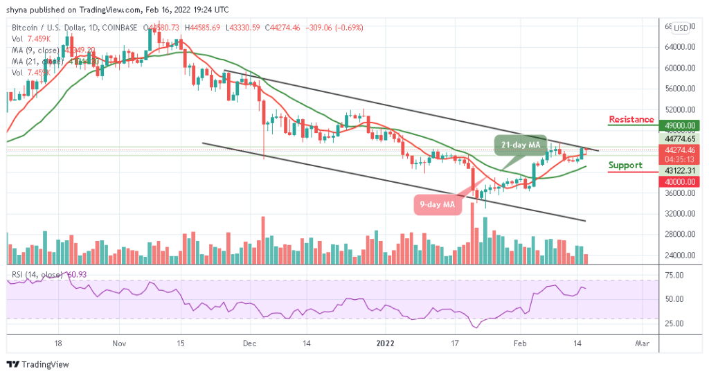 As revealed by the 4-hour chart, the Bitcoin price is seen hovering at $44,282 as the coin trades within the 9-day and 21-day moving averages with buyers pushing the price to the resistance level of $45,000. However, if the bulls decide to keep the market price above the channel, the coin may likely hit the resistance at $46,000 and above.