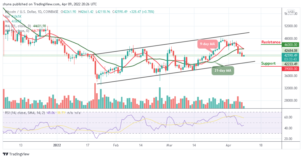 As the Bitcoin price begins today’s trade at $42,261, it is now heading to the upside and looking forward to reclaiming the resistance level of $43,000. However, the daily chart reveals that if the 9-day moving average remains above the 21-day moving average, this will confirm the next direction that the coin will follow. In other words, BTC/USD may decline if the $42,000 support breaks down, but the price could rise if the $43,000 resistance is reached.