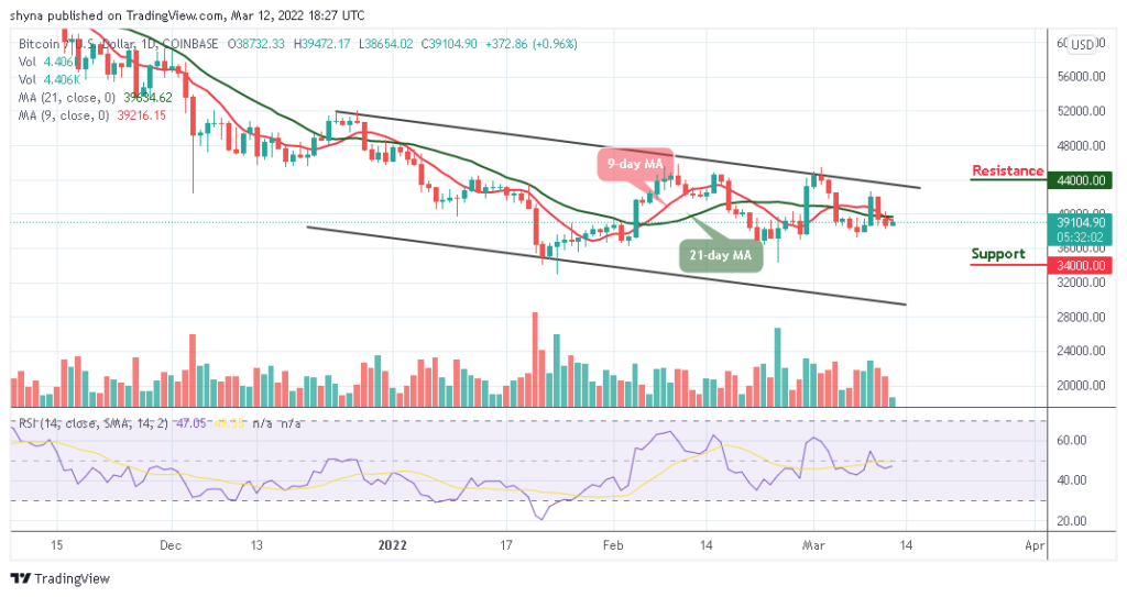 In the past few hours, after the Bitcoin price begins the daily movement, the king coin is now facing the resistance level of $39,500 and looking forward to reclaiming the resistance level of $40,000. However, the daily chart reveals that if the 9-day moving average stays above the 21-day moving average, it may confirm the next direction that the coin will follow. In other words, BTC/USD may decline if the $38,000 support breaks down, but the price could rise if the $40,000 resistance is reached.