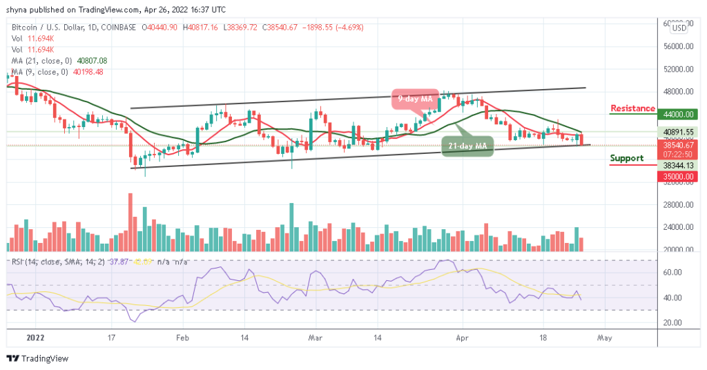 The Bitcoin price just moved toward the support level of $38,000, marking $38,369 as the current daily low at the moment. Does this mean that Bitcoin (BTC) is finally searching for a new low? As the daily volume candle supports the bears, together with the 9-day MA moving below the 21-day MA, it can be assumed that a stronger bearish movement may surface within the market.