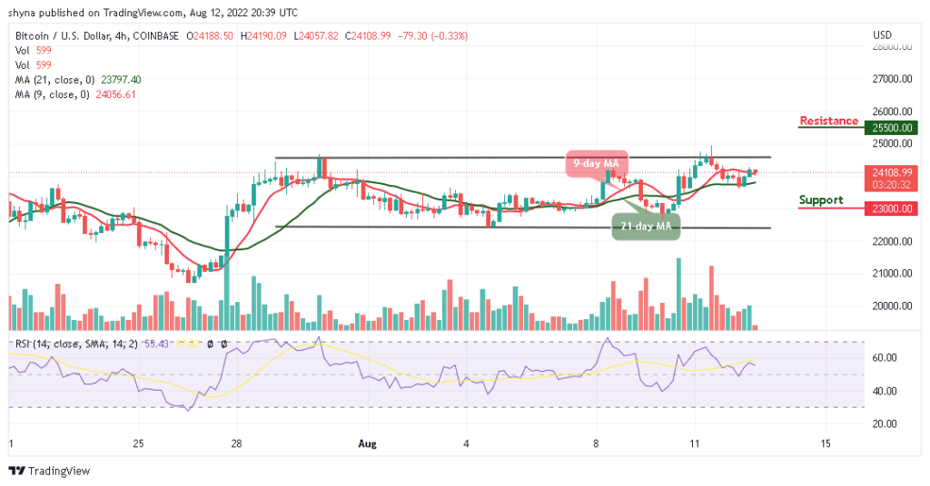 BTC/USD is currently trading around $24,180 with a 0.98% gain above the 9-day and 21-day moving averages. The Bitcoin price may fight to stay above the important level of $25,000 as it could move to cross above the upper boundary of the channel. However, for BTC/USD to remain above this barrier, the bulls may need to make the $24,000 support level to be strong.
