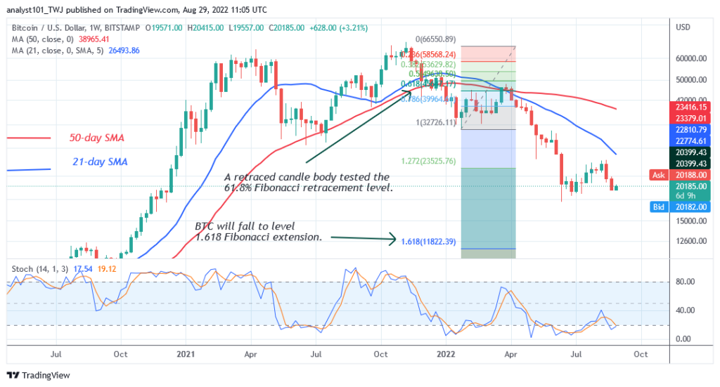 On August 29, buyers pushed BTC price above the $20,000 psychological price level as it struggles below the $20.6K high. The recovery was short-lived as the crypto faced selling pressure at the recent high. On the upside, a price rebound above the current support will catapult Bitcoin above the $22,000 resistance level. The bullish momentum will extend to the high of $24,000 overhead resistance.