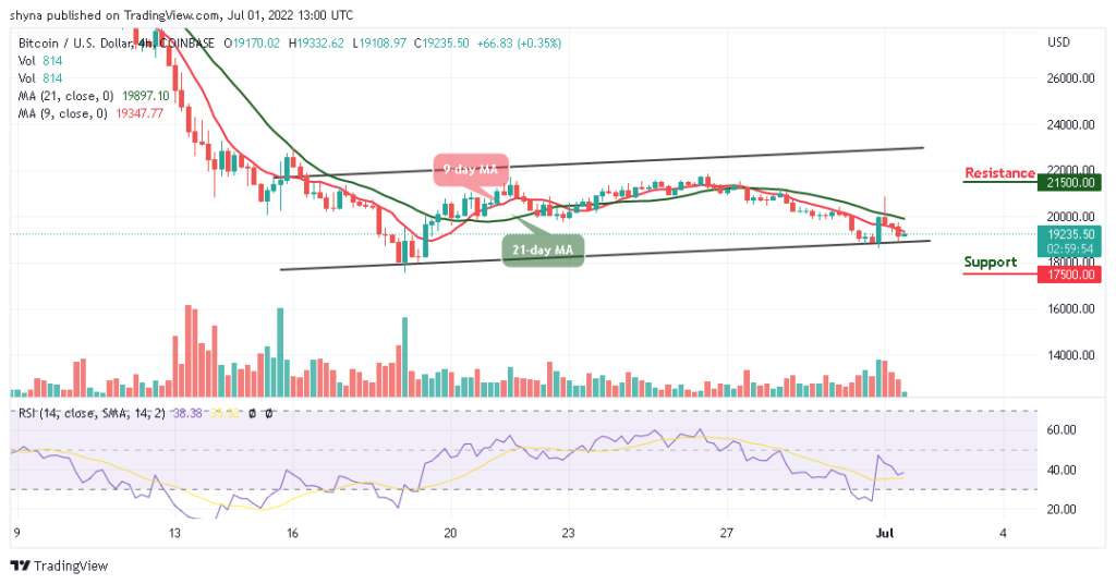 The 4-hour chart shows that the Bitcoin bulls are likely to step back into the market by pushing the BTC price to cross above the 9-day and 21-day moving averages. Although the Bitcoin price has not yet slipped below $19,000 in the last few hours, it’s still in the loop of making a bounce back.