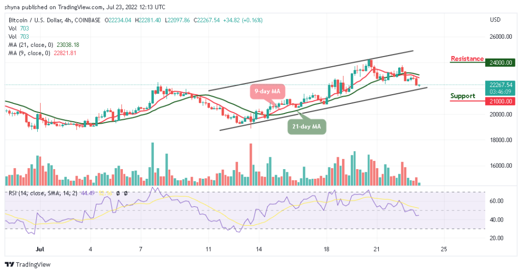 BTC/USD is hovering at $22,226. There have been instances when BTC touches the low of $22,212 to sustain the bearish price action. At the time of writing, the path of least resistance is around the 9-day and 21-day moving averages, and the daily chart shows that the formation of a bearish may come into focus.