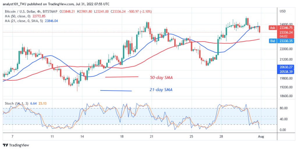 Bitcoin Fluctuates Between $22.5K and $24.7K as It Holds Above $22.5K – July 31, 2022