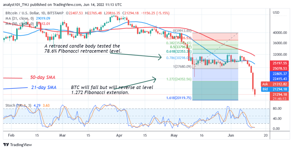 Bitcoin May Resume Consolidation as It Tumbles Above $20.8K – June 14, 2022
