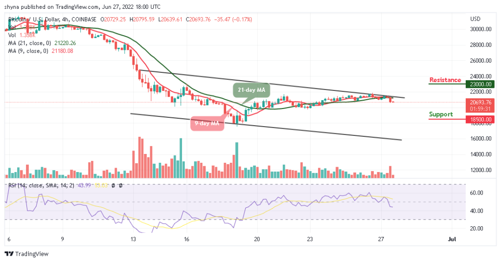 On the 4-hour chart, the Bitcoin price has been ranging as the coin crosses below the 9-day and 21-day moving averages. However, the Bitcoin price is likely to return to the bull market if the 9-day MA crosses above the 21-day MA, and higher resistance could be located at $23,000 and above.
