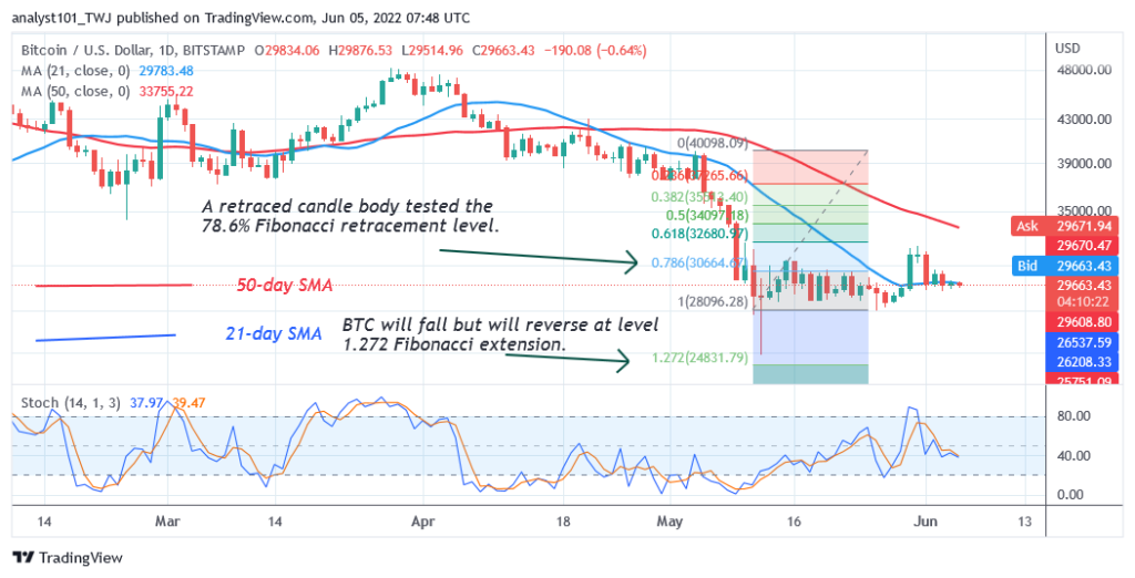 On June 1 and June 3, the bears attempted to break below the $29,300 support. Bitcoin could have fallen to the low of $28,630 if the bears were successful. Subsequently, the decline would reach a low of $25,691. However, today, the BTC price has rebounded above the $29,300 support. The bulls will attempt to revisit the $32,000 resistance and sustain the bullish momentum above it. On the upside, if the BTC price rises and breaks above the $32,000 resistance, the market will rally above the 50-day SMA ( above the $35,000 high). Bitcoin will further rise to the $40,000 psychological price level if the bulls succeed in breaking above the 50-day SMA. In the meantime, the BTC price is still approaching the $32,000 high.