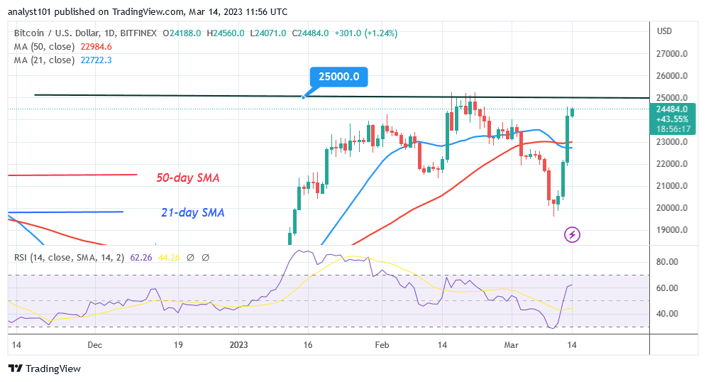 Bitcoin Price Prediction for Today, March 14: BTC Price Is Recovering as It Approaches the $25K Mark