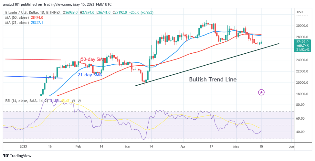 Bitcoin Price Prediction for Today May 15: BTC Price Regains Bullish Momentum but Struggles below $27.5K