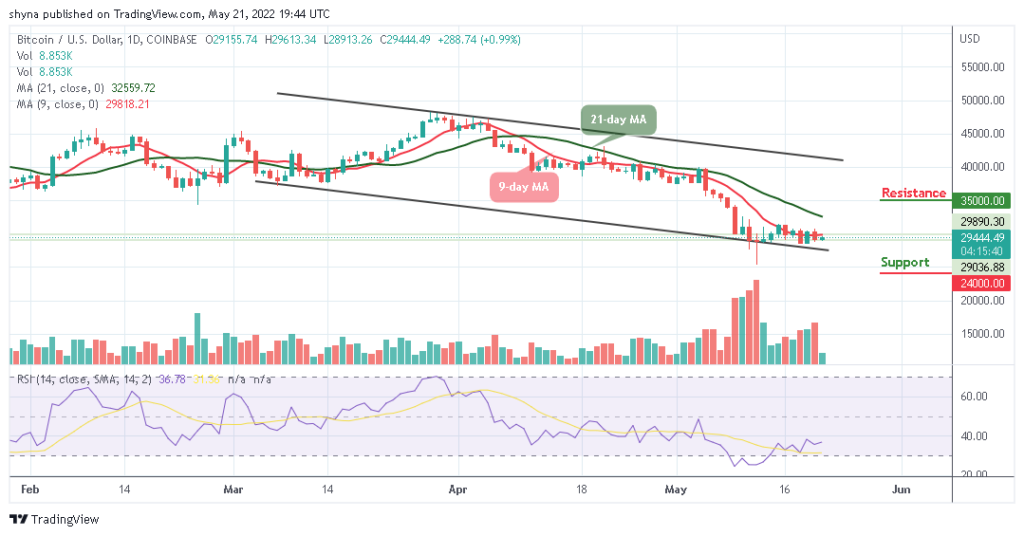 Looking at the 4-Hour chart, Bitcoin (BTC) has not yet slipped below $29,000 but is in the loop of making a bounce back. The Bitcoin price hovers within the 9-day moving average and may likely take time to trade above the $32,000. At the moment, the Bitcoin price is currently moving around the $29,454 level.