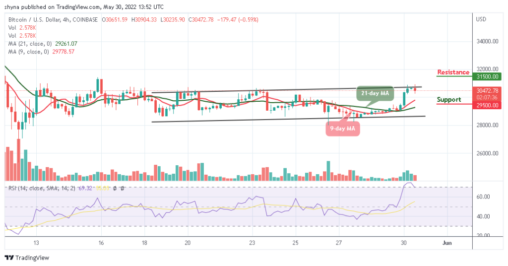 According to the 4-hour chart, BTC/USD is moving sideways as the market is currently showing a sign of a bullish movement. However, following the recent rebound at $30,235 which is now a key support level, the king coin is expected to stay above this level. Meanwhile, any bearish movement below the 9-day and 21-day moving averages could locate the support level at $29,500 and below.