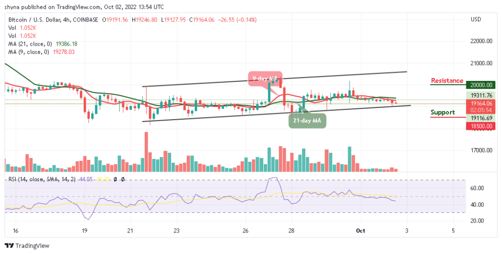 The 4-hour chart shows that the Bitcoin bears are still in play within the market keeping the Bitcoin price below the 9-day and 21-day moving averages. Although BTC/USD has not yet slipped below $19,000, it’s still in the loop of making a bounce back.