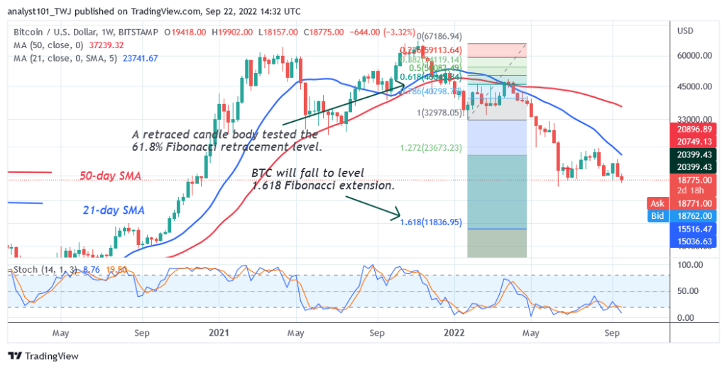 BTC/USD has regained bullish momentum as buyers recoup above the $18.2K Low. On September 19 upward correction, Bitcoin rallied to the high of $19,694 but could not break above the recent high. The largest cryptocurrency can recover above the $20,000 high if it breaks above the 21-day line SMA.