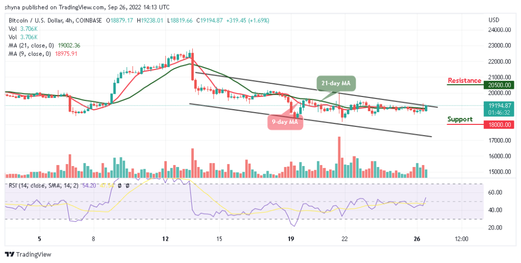 According to the 4-hour chart, BTC/USD is currently trading above the 9-day and 21-day moving averages as the coin moves to cross above the upper boundary of the channel which could hit the resistance level of $20,000 and above. But the Bitcoin market is likely to be range-bound around the moving averages while the buyers keep the position intact