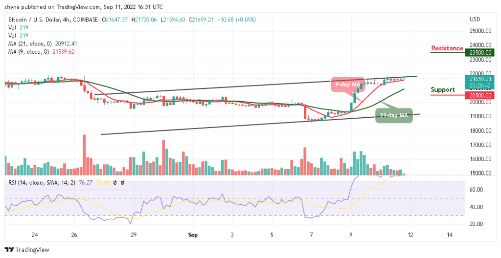 BTC/USD is hovering at the $21,709 resistance level as the market price stays above the 9-day and 21-day moving averages, indicating a bullish movement. For the past few days, the Bitcoin price has been moving positively and in the context of the Bitcoin exchange rate forecast; an application of $22,000 resistance is expected.