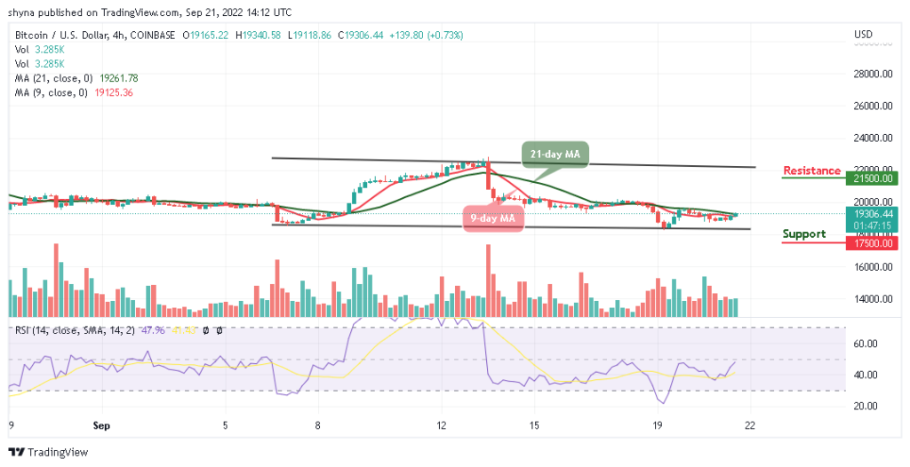 BTC/USD is moving sideways as the coin establishes a cross above $19,000 but currently rebounding to retest previous resistance at $19,500. The buyers may continue to look for some resistance levels by crossing above the 9-day and 21-day moving averages on their way to the upper boundary of the channel and the path of least resistance appears to the upside in the near term amid a favorable bullish technical setup.