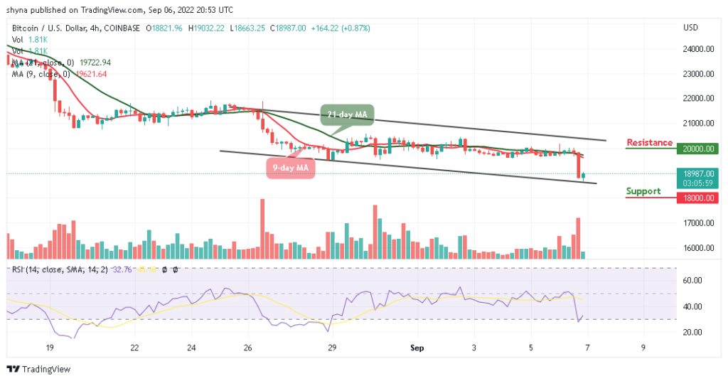 The Bitcoin price is just moving towards the support level of $18,500, after marking $18,663 as the current daily low in the market. Does this mean that Bitcoin (BTC) is finally searching for a new low? As the daily volume candle supports the bears, together with the 9-day moving average staying below the 21-day moving average, it can be assumed that a stronger bearish movement may surface in the next negative movement.