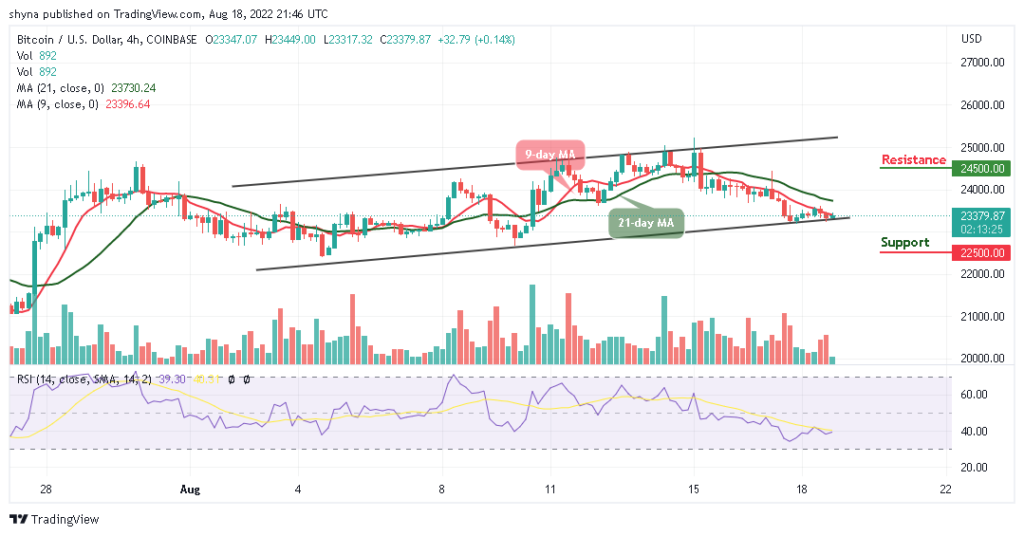 According to the 4-hour chart, the Bitcoin price remains below the 9-day and 21-day moving averages at a price value of $23,379. With the look of things, the bulls may begin to push the price to cross above the moving averages but any bearish cross below the lower boundary of the channel may bring the coin towards the support level of $22,500 and below.
