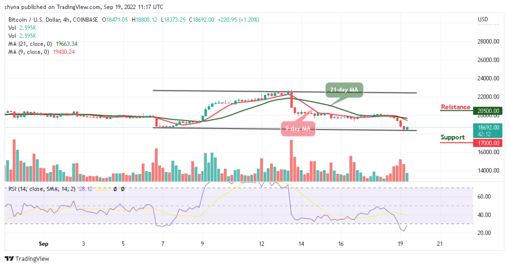 On the 4-Hour chart, the BTC price hovers around $18,692 and could take time to cross above the 9-day and 21-day moving averages. More so, if the bulls gather enough strength, the upward movement may be able to near the resistance levels of $20,500 and above.