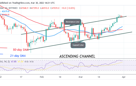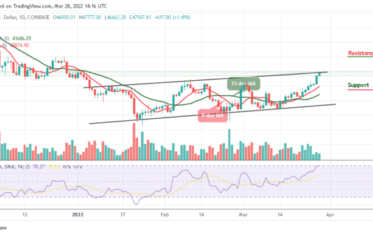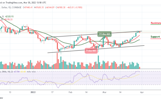 BTC Price Consolidates Below Recent High as Bitcoin Battles $48K Resistance – March 30, 2022 On March 28, BTC/USD rallied...