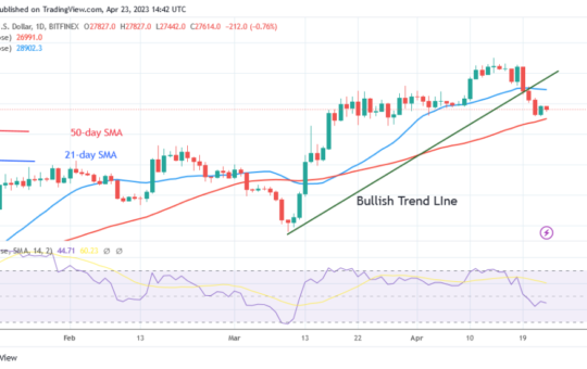 Bitcoin Is in a Downhill but It Is Hovering Above $27.2K – April 21, 2023 The selling pressure on the...