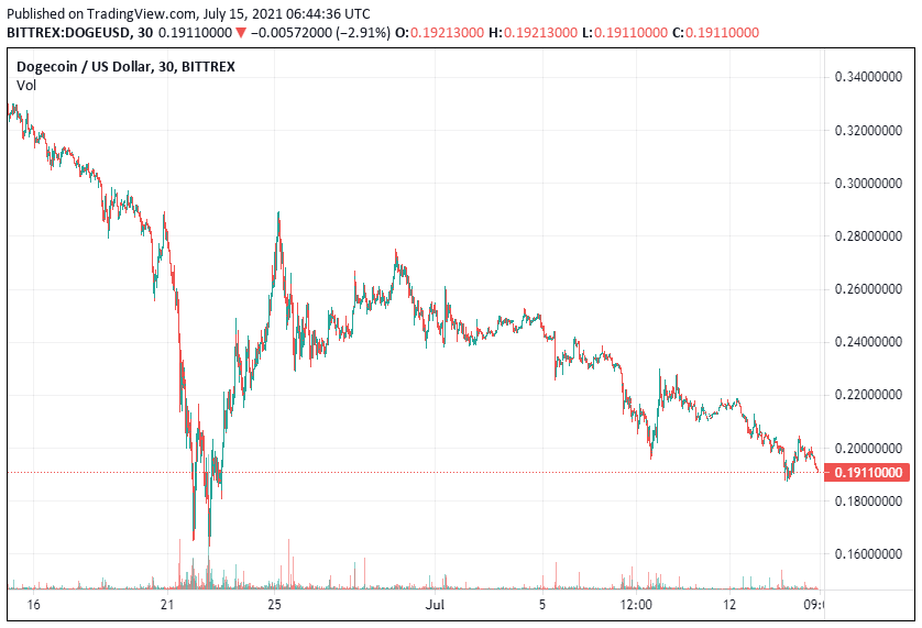 The crypto market had a sudden pullback yesterday after ethereum fell below $1900 and bitcoin fell to below $32K. This pullback led to a price fluctuation for altcoins, and dogecoin was among the coins that retreated below critical support levels. However, the market seems to be recovering, and dogecoin has made some gains.