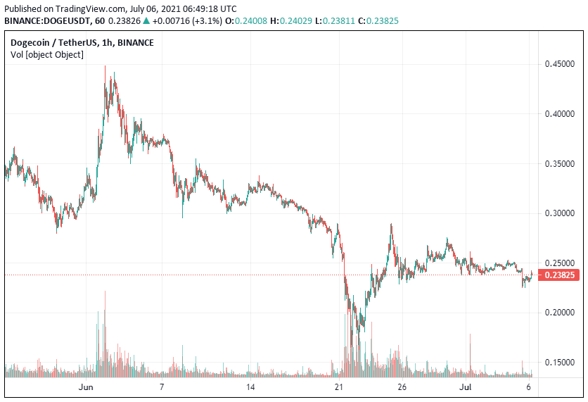 At the time of writing, dogecoin is trading at $0.236 on major exchanges after a 2.3% fall in 24 hours.