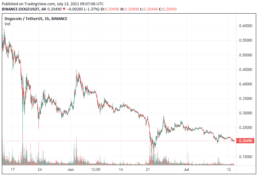 Dogecoin is not performing very well this month, given that it has failed to register new highs. Elon Musk stepped to dogecoin’s aid last week through a tweet, but the upswing from that tweet was short-lived, given that dogecoin fell afterwards and failed to maintain the uptrend.