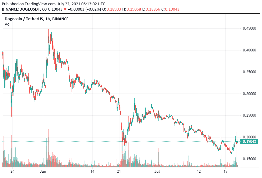 Dogecoin has been on a steady decline in July, but this week shows positive gains for the coin. The recent upswing comes from the recovery of the broader market after bitcoin managed to clinch $32K and ethereum pushed to $1900.