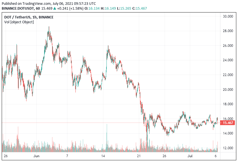 In the past 24 hours, DOT has reduced by 1.3%, and it is trading at $15.40 at the time of writing.