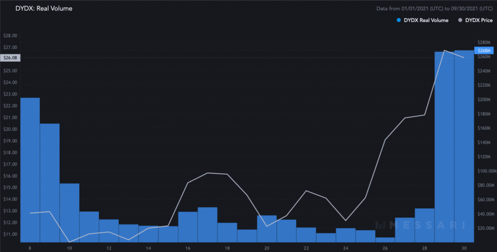 Crypto derivatives-focused decentralised exchange dYdX released its governance token (DYDX) on 8 September after an airdrop to users and its been on fire ever since. The token began trading at $11.84 and is currently priced at $26.41 for a 120% return.
