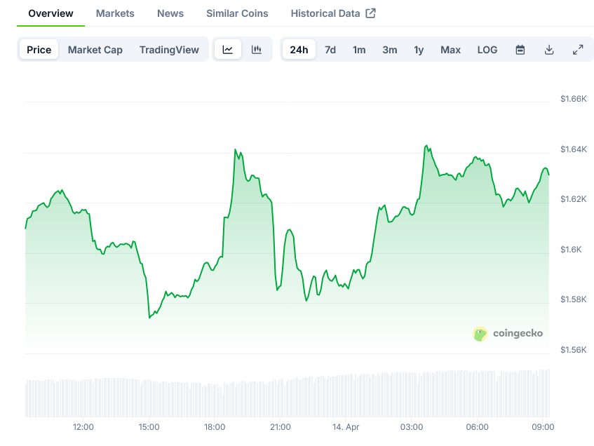The cryptocurrency formed a base above $1,500 before starting its recent upward move. The price gained momentum as it climbed above the $1,550 and $1,580 resistance levels, eventually reaching $1,668 before starting a downside correction.
