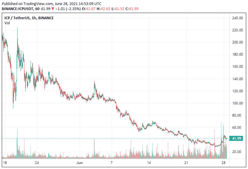 The ICP token had a great start this year after listing on major exchanges such as Binance, OKEx, Coinbase and Huobi. However, in May, the value of the ICP token dropped by a third from $630 to around $250. The token managed to recover again to $400 but resumed a downward trend to the current levels.