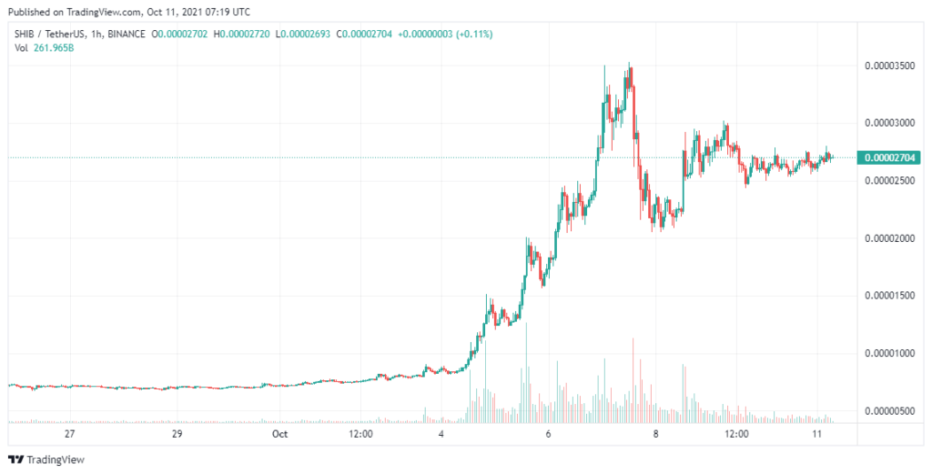 Shiba Inu was one of the best performing altcoins last week. The coin has gained more than 200% over the last seven days, inching it closer to its all-time highs. Moreover, the meme coin has also moved towards the top 20 cryptocurrencies in terms of market capitalization. SHIB’s market cap currently stands at over $13 billion, and it is the 12th largest cryptocurrency by this metric, according to data from CoinGecko.