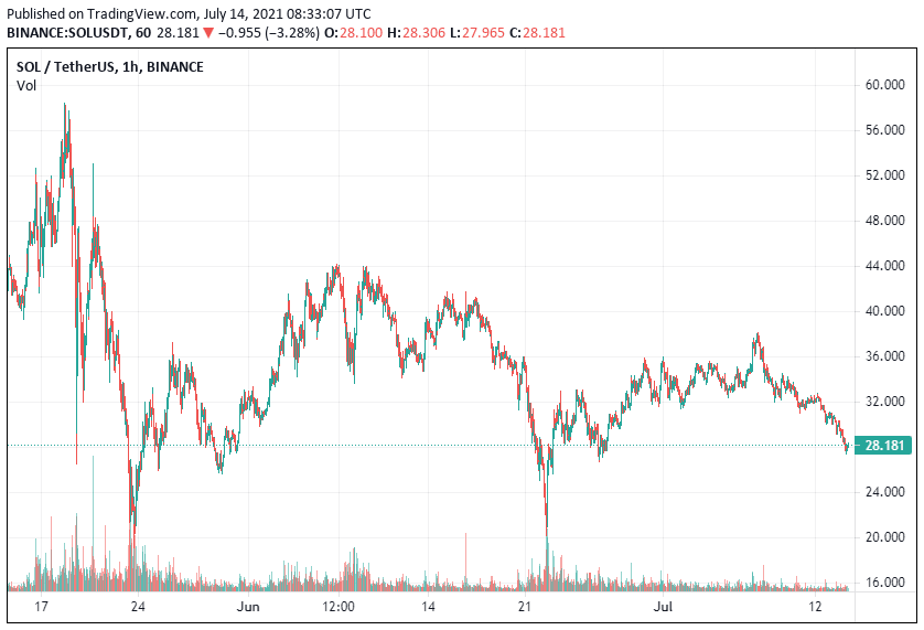 SOL is trading at $28.27 at the time of writing on major exchanges after a 7.6% fall in 24 hours.