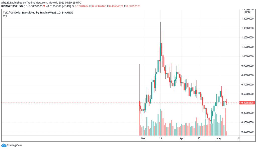 If a user chooses this option, Binance will give the user back their initial investment minus the distributed interest earned. At the time of writing, TVK was trading at $0.54.