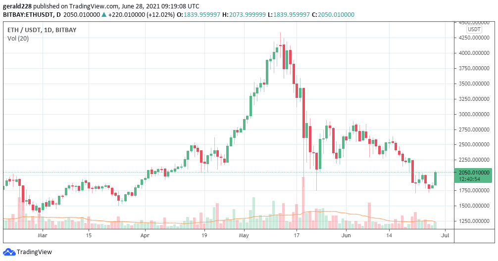 The price rose by at least 10% overnight so it does seem that the rebound has legs. If resistance levels of $2200 are broken, then the price could easily rise to the $2900 level in a few days. This would represent a 30-40% gain over the lows of $1700 reached just yesterday. Ethereum remains a solid BUY for a good rebound