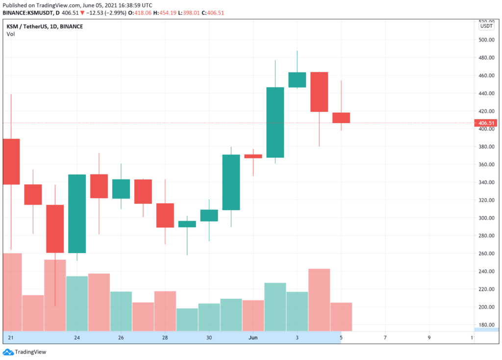 With an impressive one-two punch, the Kusama value (KSM) – as well as that of Polkadot (DOT) – immediately went on an upsurge. KSM was particularly impressive, hitting a high of $480 on the day.