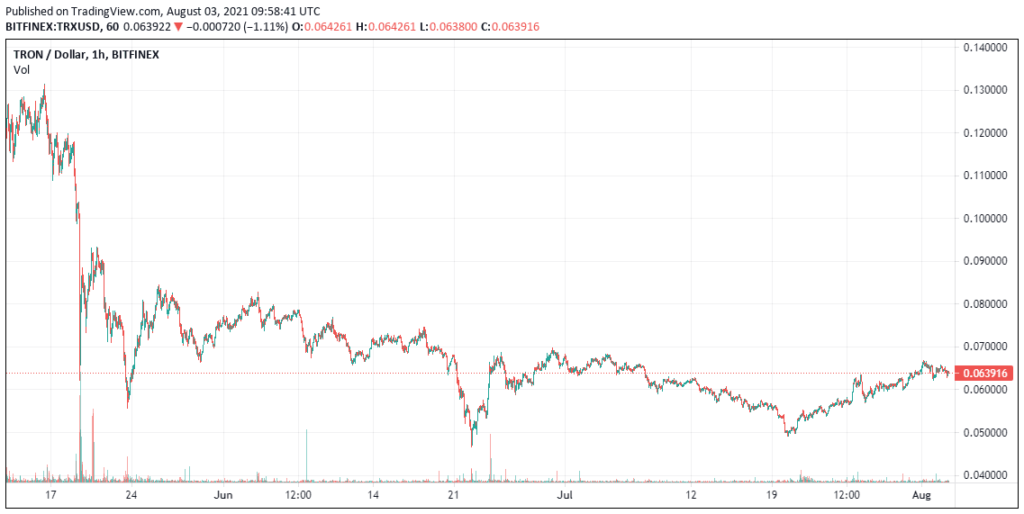 TRON is trading at $0.064 at the time of writing after a 0.9% price decline.