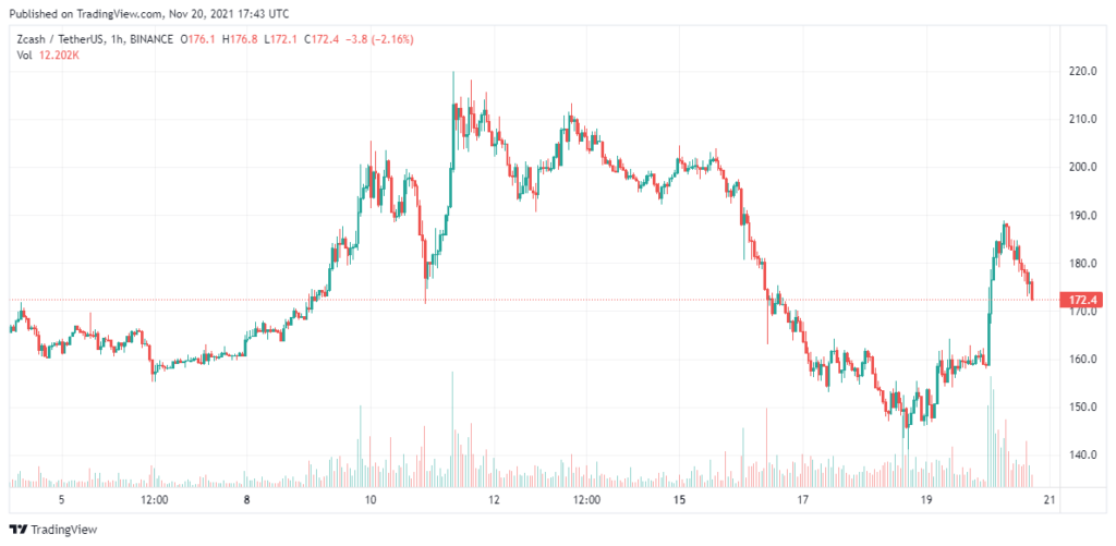 Zcash is trading at $174 at the time of writing after an 8.2% gain in 24 hours.